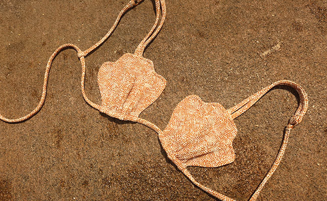 Hand wash our swimwear in cold water and lay flat to dry for lasting wear